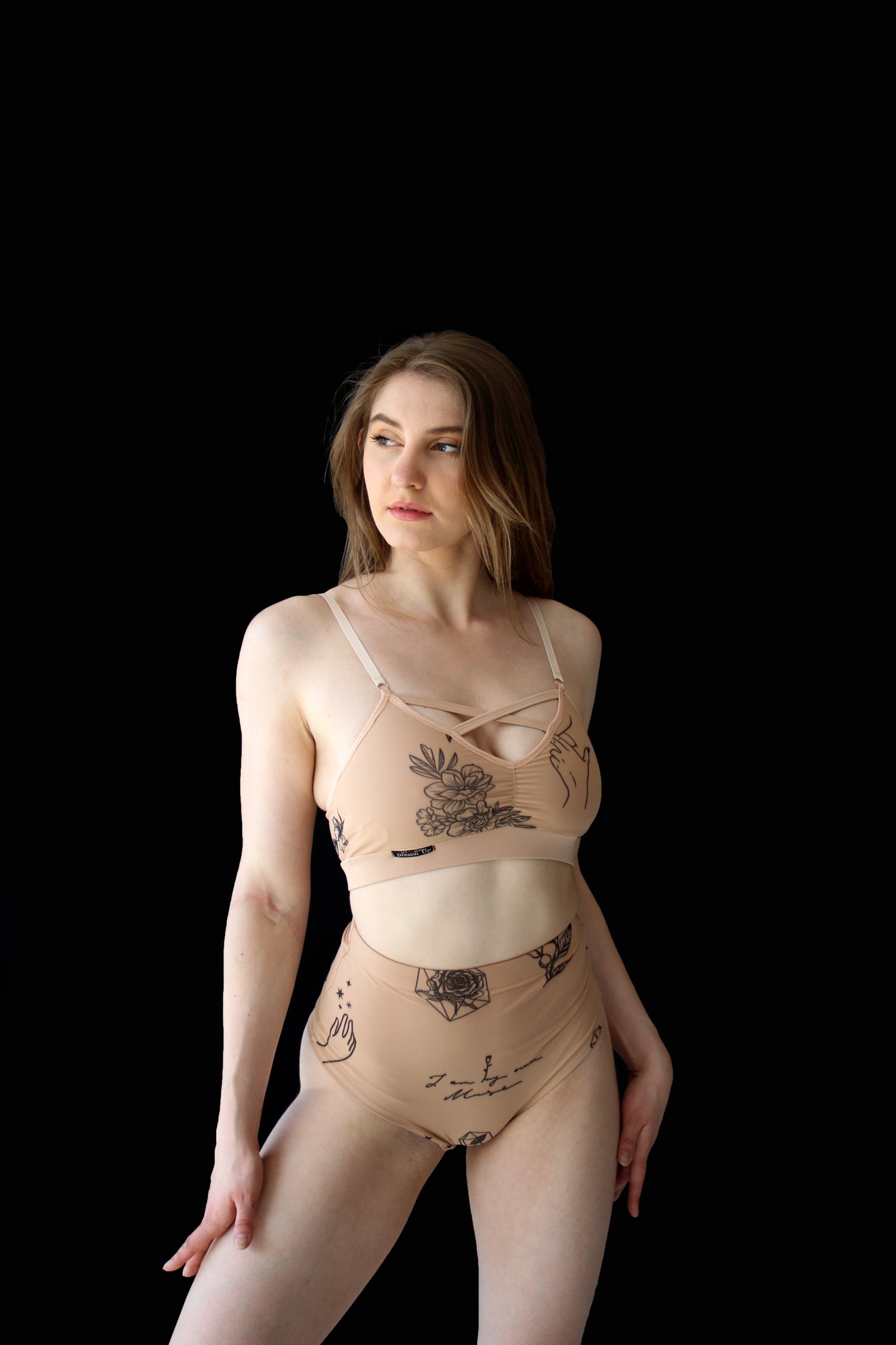 Мінімалістичний, але виразний - Tattoo Basic Комплект втілює впевненість і сміливу індивідуальність. Доступний у кольорах бежевому, білому та чорному, тканина з тату-принтом створює ефект «другої шкіри», що підкреслює кожен рух. Перехресні бретелі додають сучасної форми та фіксації, а високі шорти візуально подовжують ноги. М’яка еластична тканина з 4-сторонньою розтяжністю забезпечує повний комфорт і свободу для тренувань, сценічних виступів та фотосесій. Ідеально для: pole dance, high heels, exotic, twerk, go-go, contemporary, стречингу, йоги, фітнесу та фотосесій.