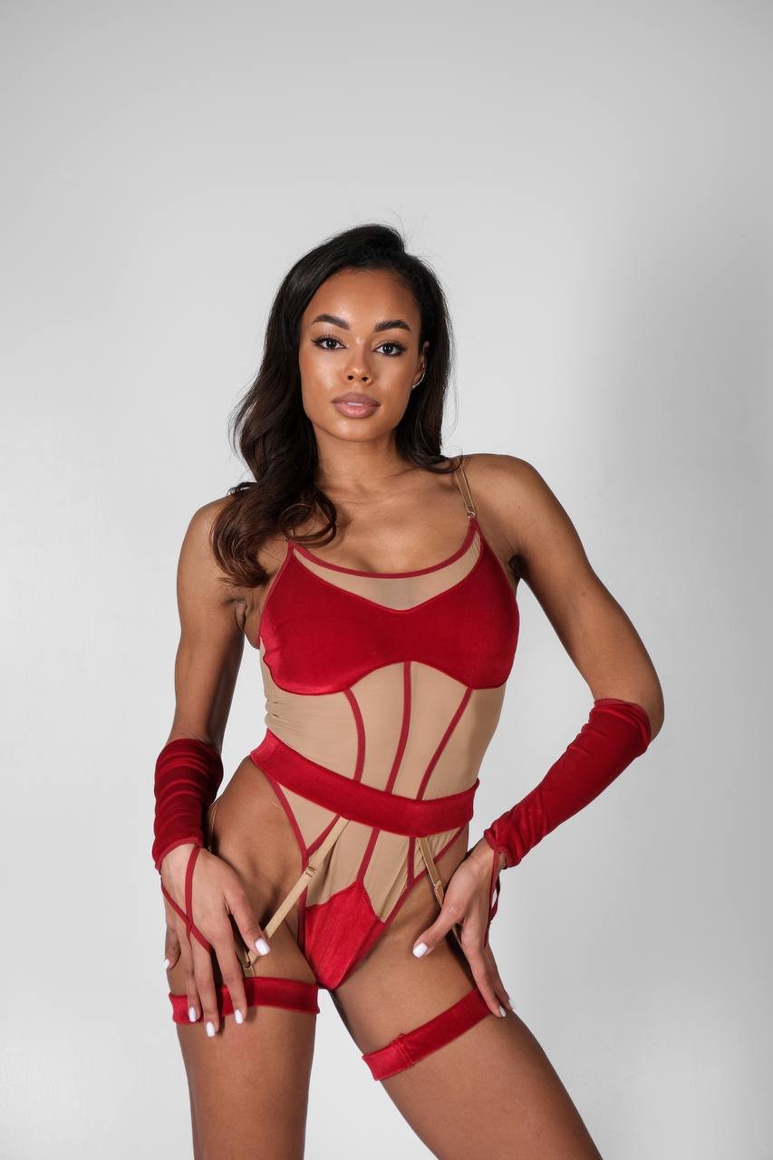 Боді ISHTAR з Оксамиту з Гартерами Поясом та Рукавичками для Pole Dance та Сценічних Виступів