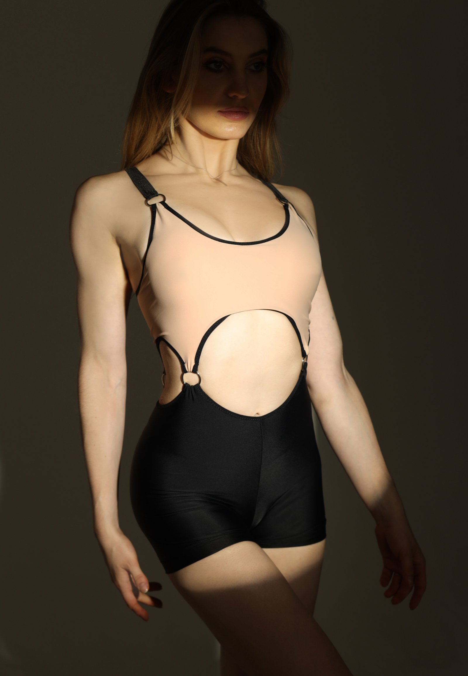 Стриманий, мінімалістичний і неймовірно виграшний — Комбінезон Mini Duo поєднує скульптурний силует із м’якою матовою еластичною тканиною. Він рухається разом із тілом, забезпечуючи комфорт і свободу, що робить його ідеальним для pole dance, exotic або сценічних виступів. Контрастний верх і матовий низ створюють сміливий візуальний баланс, підкреслюючи фігуру та зберігаючи чистий, сучасний вигляд.