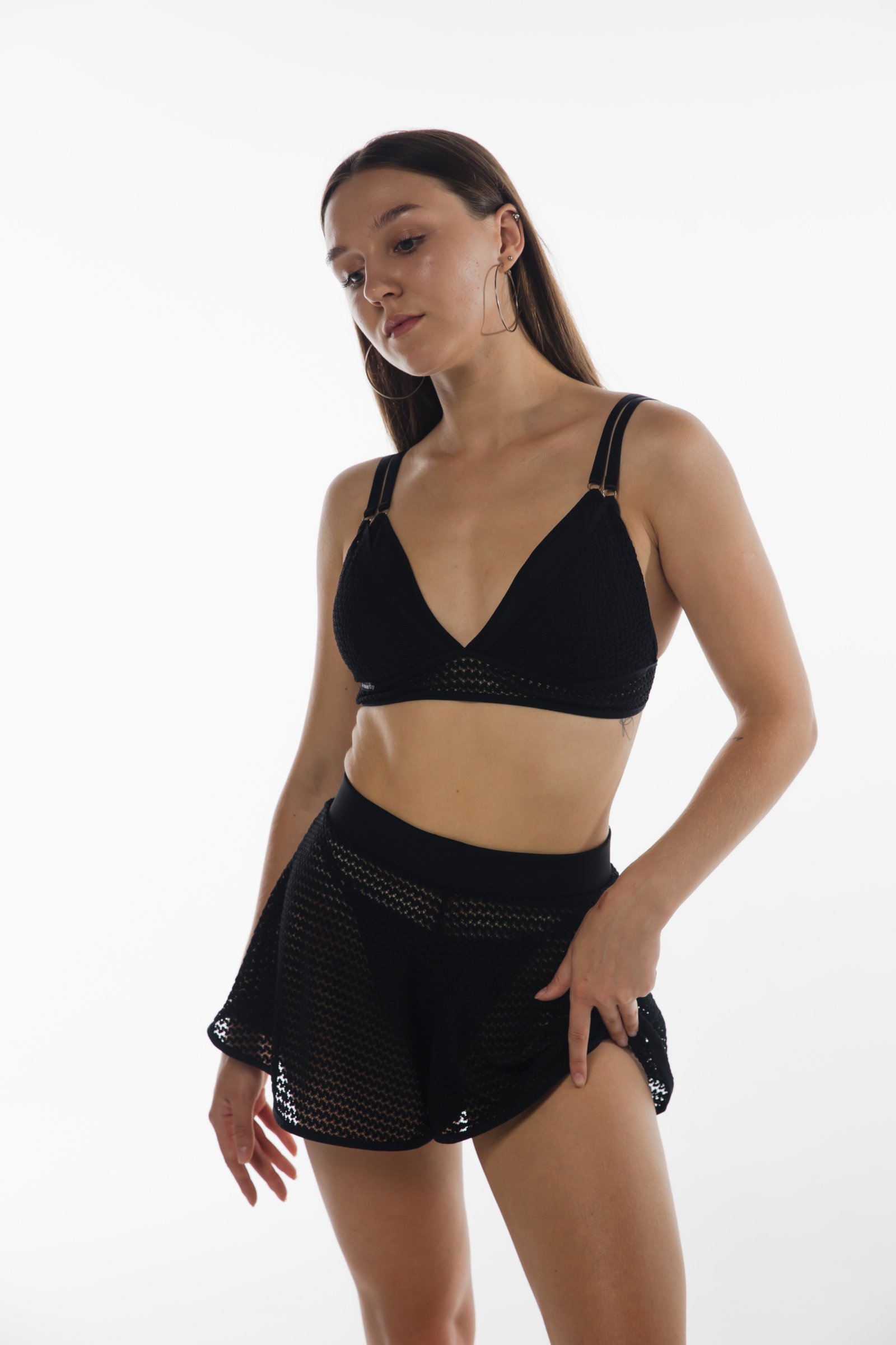 Легкі, повітряні та елегантні — Muse 2 Шорти створені, щоб красиво рухатися разом із тілом. Мʼяка сітчаста накидка додає образу плавності та сценічної виразності, а високий пояс формує талію та підкреслює вигини. Ідеальні для pole dance, heels, сценічних номерів, студійних занять і навіть пляжних образів.